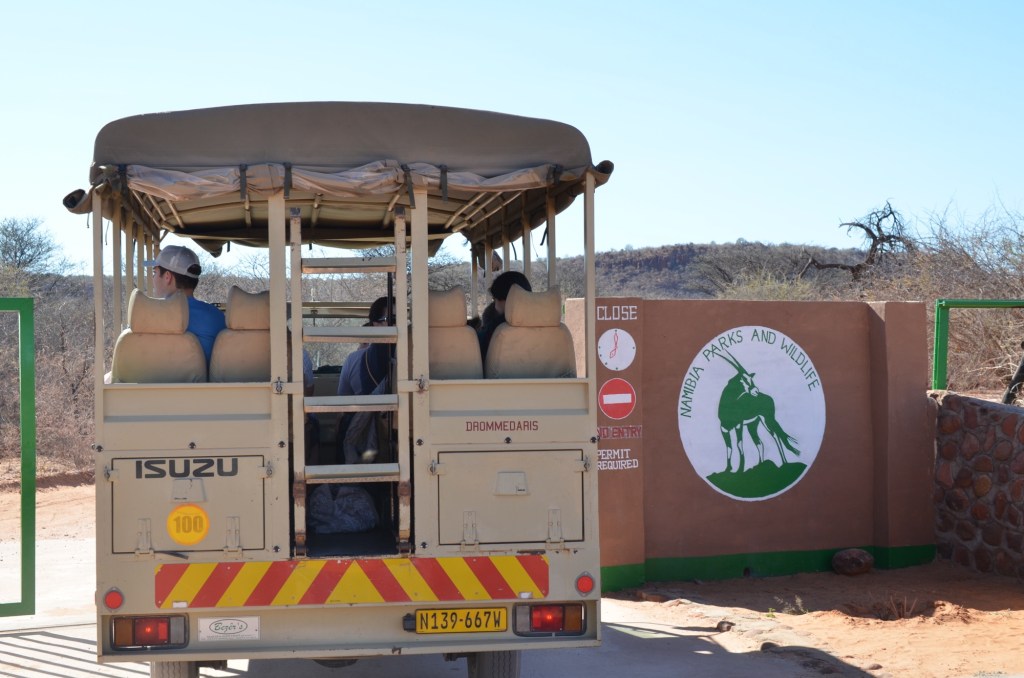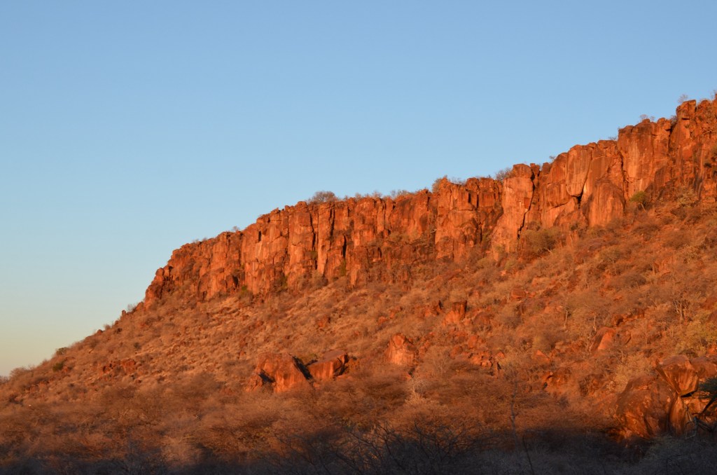 Waterberg plateau park is a red mountain massive located between Windhoek and Etosha and is a perfect stopover on the way to the north. The red mountains are rising from an otherwise flat landscape, and has a flat top where several animals live. You can see rhinos, buffaloes, giraffes, gemsbucks, Sable antelopes, daisies, porcupines and birds, but no lions or elephants, so it’s relatively safe.