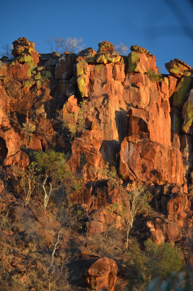The Wilderness camp and Plateau Lodge is absolutely amazing. We had our own little house, in red rocks as seen everywhere in Waterberg, with a small plunge pool, sun-beds, beautiful view, wine and a wonderful starry sky. At one stage we heard something behind our house, and went so check what it was? We discovered that somebody had lit a fire to heat up our water-tank, in case we wanted a hot shower. What a treat 🙂 The food in the restaurant was also amazing. In the morning, we joined a guided walk up the ridge and learnt about how the clay-layer in the red rocks preserve the water and makes the mountain ridge so full of vegetation.