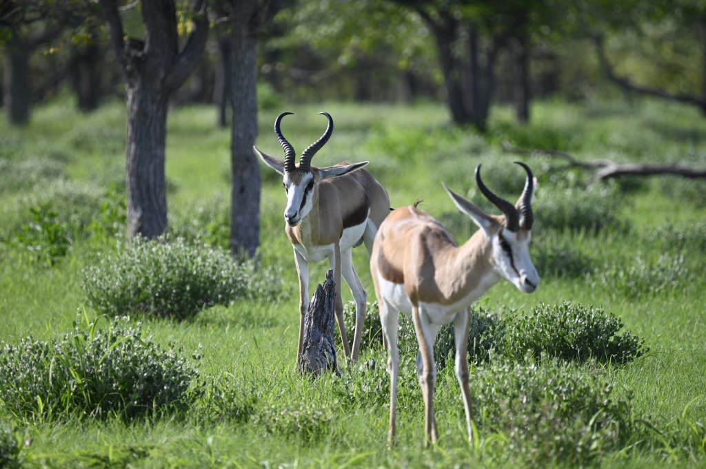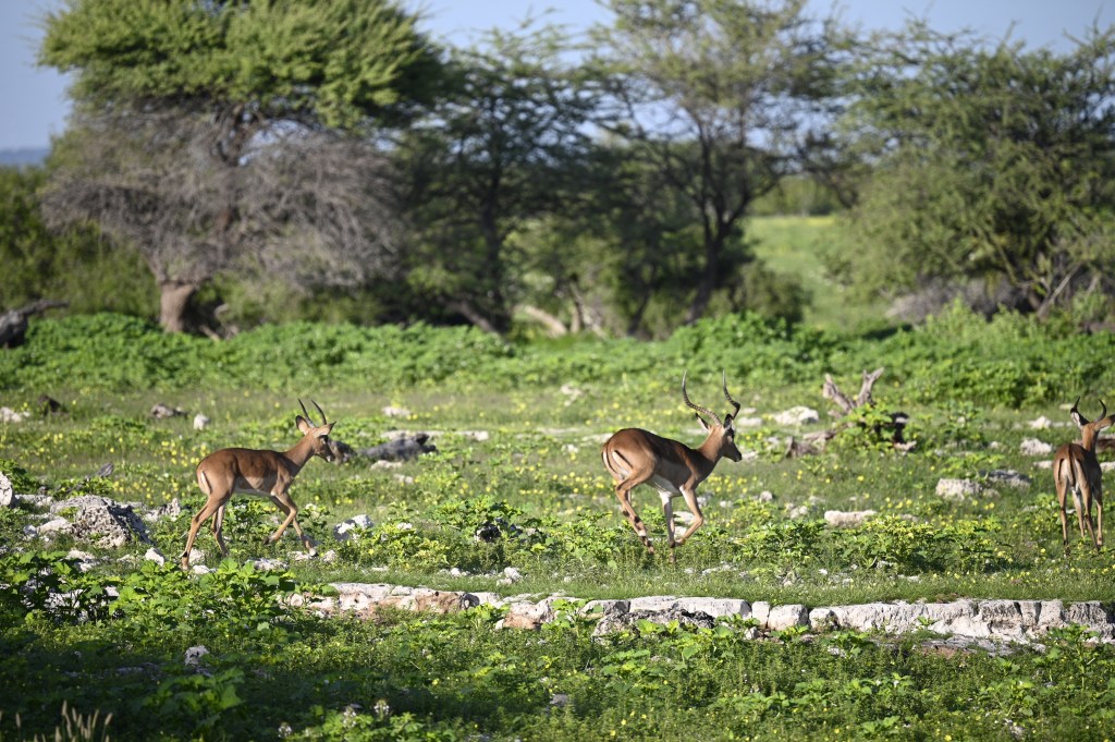 This time in Okaukuejo was quite a different experience from the other eight times I have been there. Due to the rain that had been going on for weeks, the animals had no need for going to waterholes to drink, but was spread all around the park, often in places where we could not see them. We did, however, see some impala antelopes and birds.