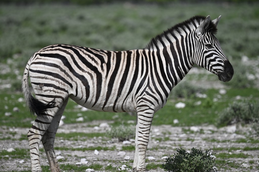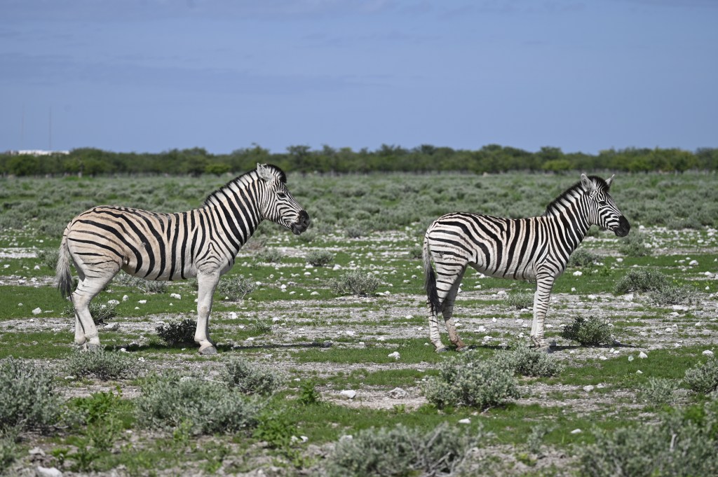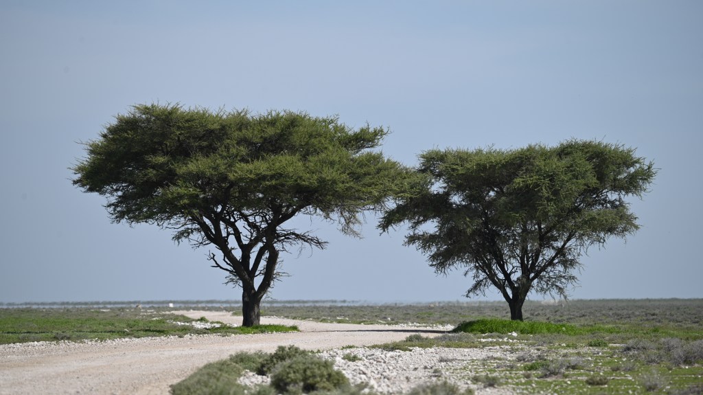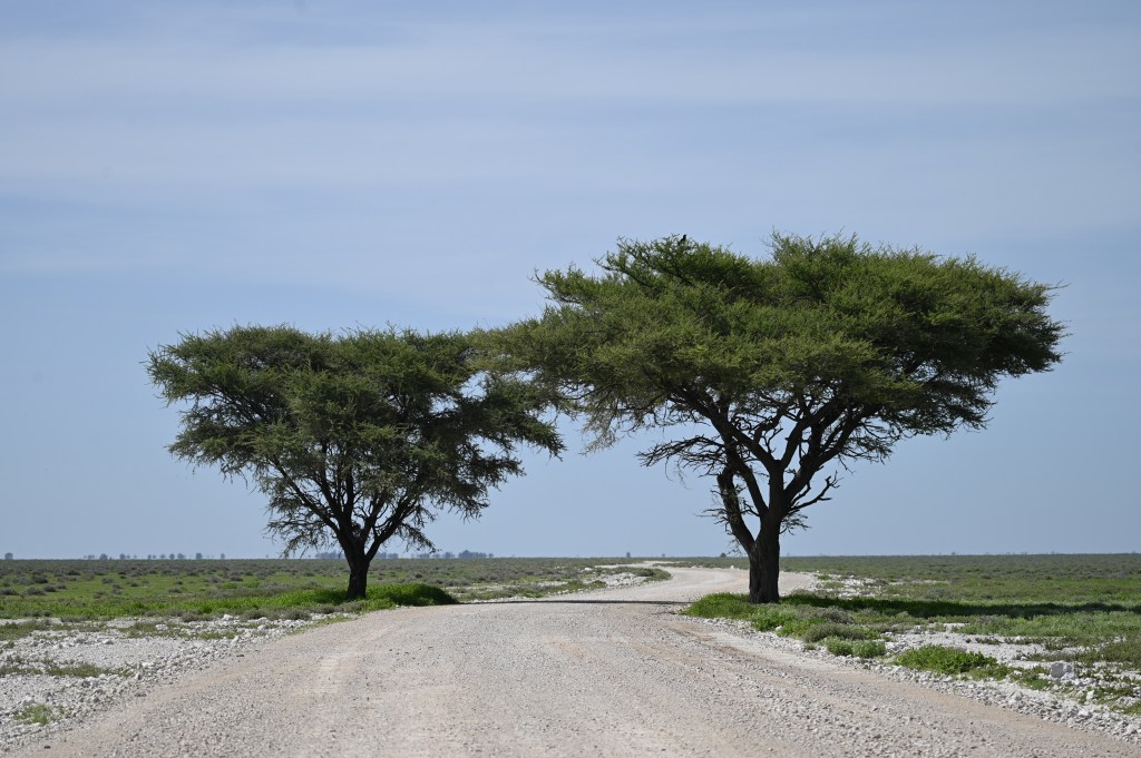 North of Okaukuejo is the waterhole Okandeka, which we normally visit, as we often have seen lions there in the afternoon. This time we did not get the time to look, but drove a little north on the western side of the pan to visit the two trees standing on the side of the road in an otherwise flat and empty area, which often give shelter to herds of springbuck. As it were not too warm and had been raining the animals was more spread, but we saw some springbuck and zebras in the area. The plains was covered with grass and flowers and very beautiful.