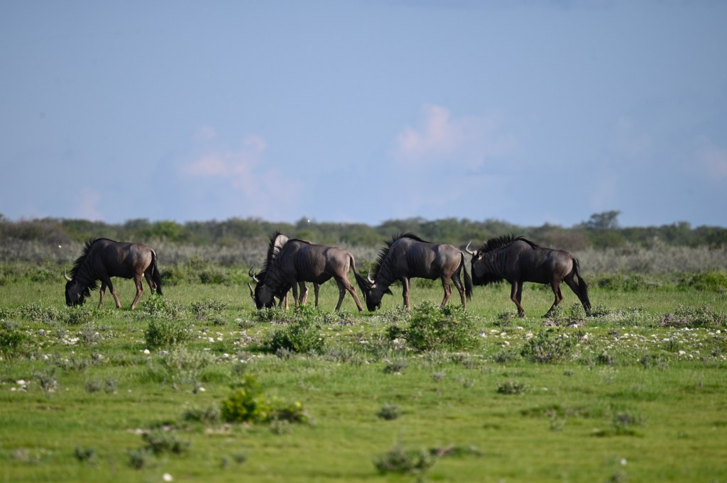 We also saw a lot of antelopes in western Etosha, as Springbuck, Oryx, Red Heartbeast, Stenbuck and Blue Wildebeast. In addition we saw Giraffes, Vultures, a Brown Hyena, a Varan and lots of flowers.