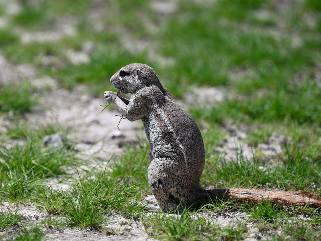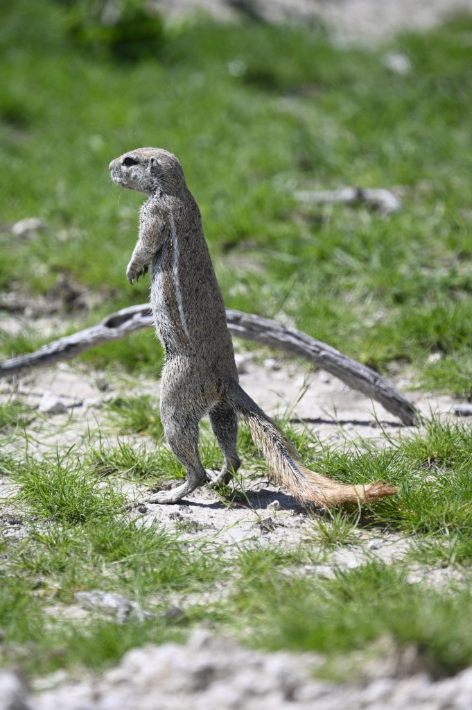 Ground squirrels are beautiful and funny creatures. They dig large holes in the ground, linked with a tunnel system between. I’ve mostly seen these in the dryer western part of Etosha.