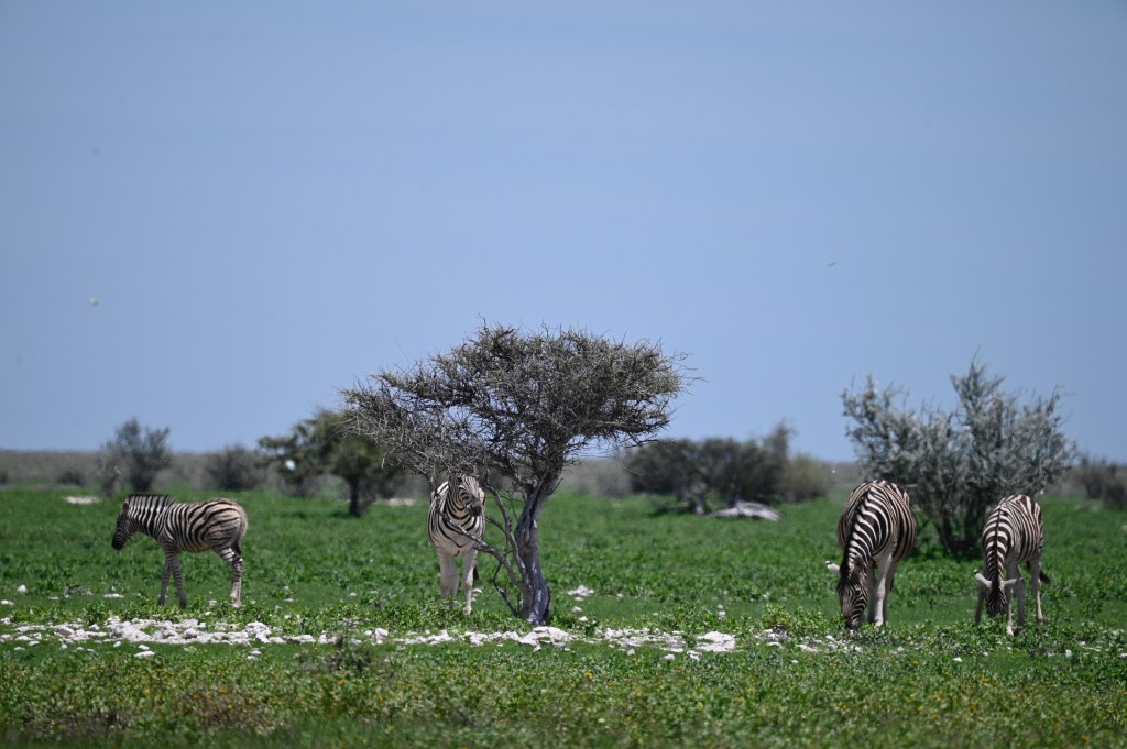 Due to the rain, there was flowers and grass in landscapes which otherwise would have been dry and rocky. some areas looked like huge gardens and outside the fenced reststop, zebras grassed freely. One day we saw the leaves of desert lillies and the day after we saw them in full bloom.