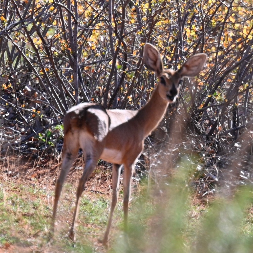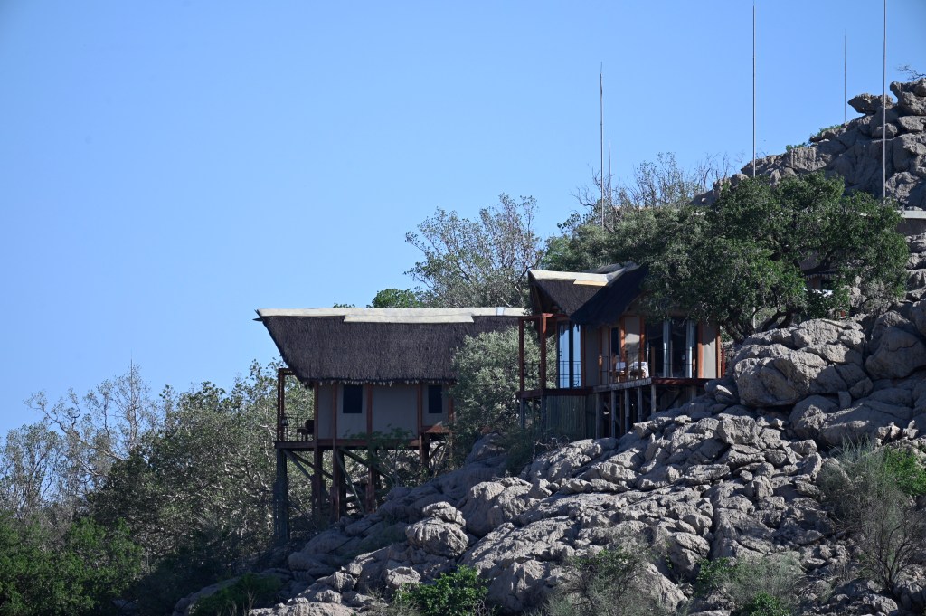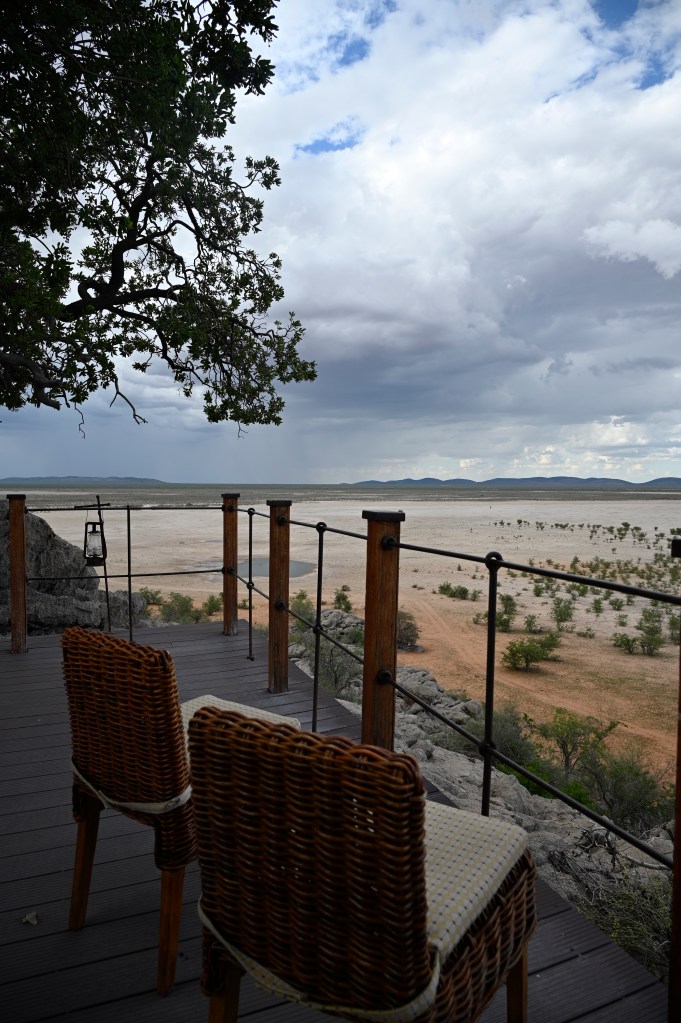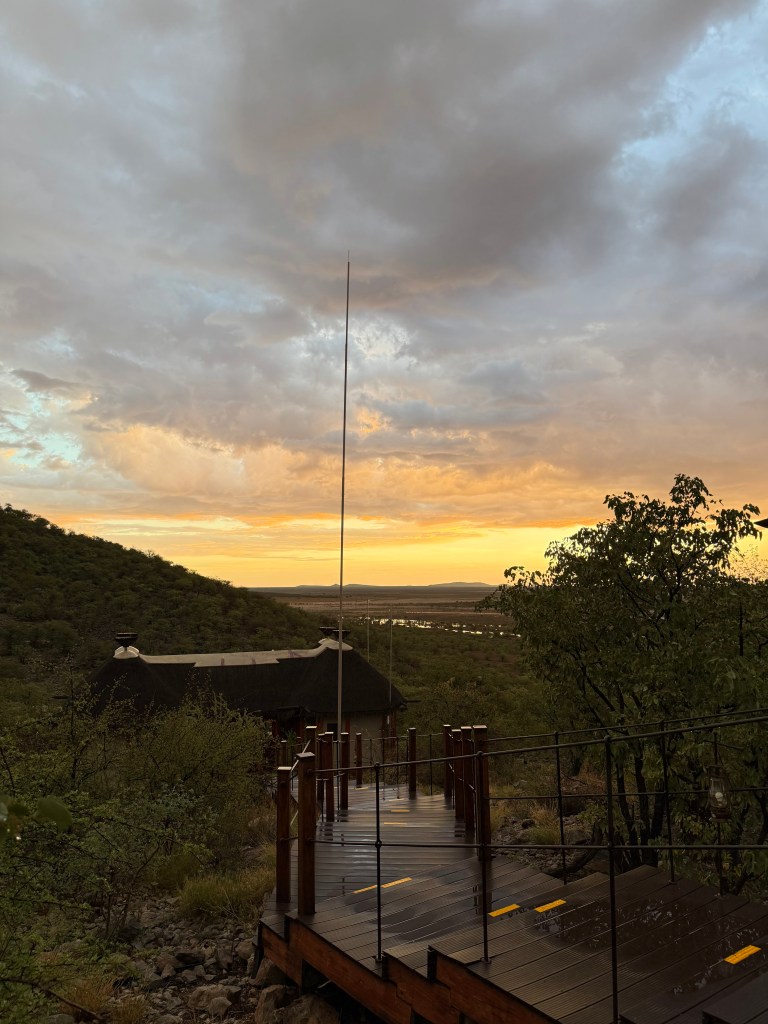 Dolomite was such a treat! We lived in a de-luxe chalet with our own private plunge pool and view over the waterhole from our two balconies. It was the cabin furthest away from the reception, restaurant and main pool area, but a small “golf-car” picked us and our luggage up at he parking, a little down-hill and drove it to our cabin. It also drove us home in the evening, when it was too dark to walk home. There are no fences in Dolomite camp, so it may be wise not to walk home alone in the dark, with night-active animals around.
