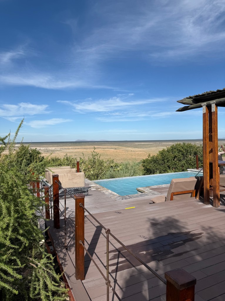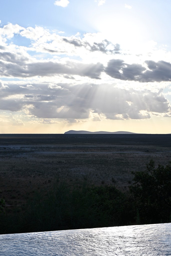 The view from the Dolomite camp was spectacular. From the main pool, we could look over the wide plains and see the beautiful sunset.