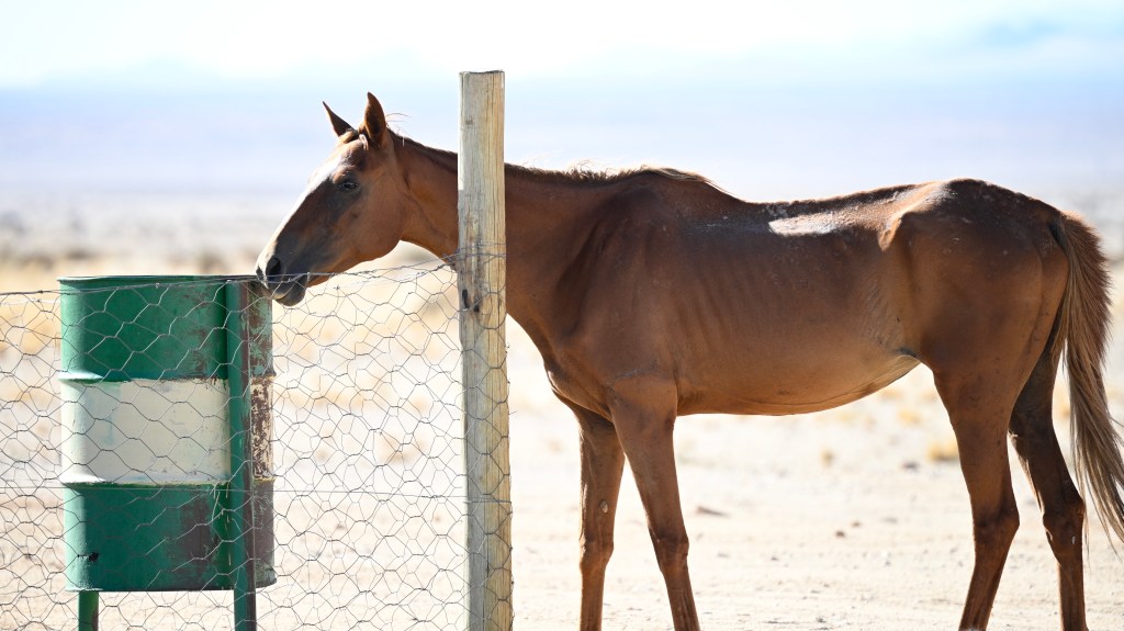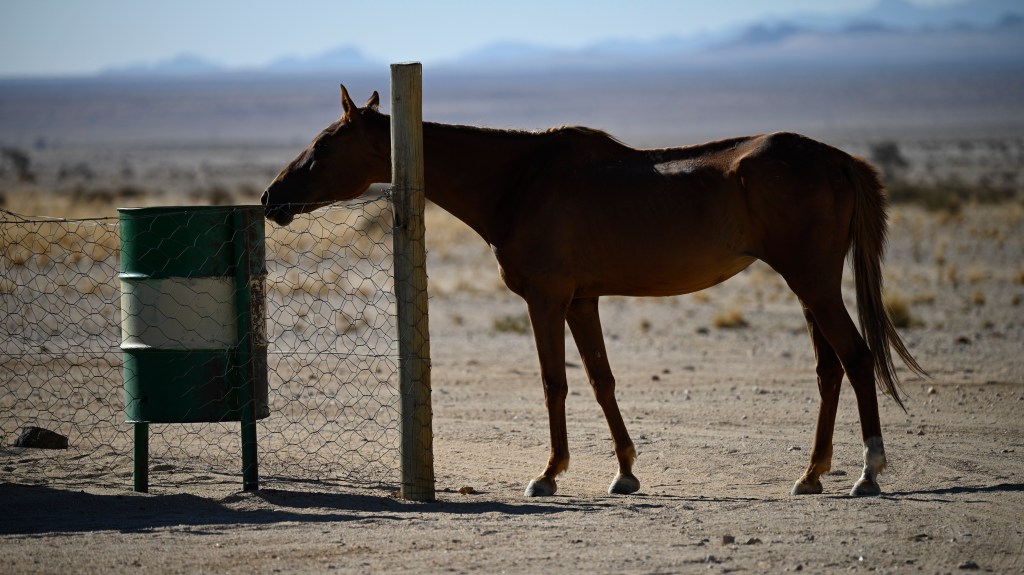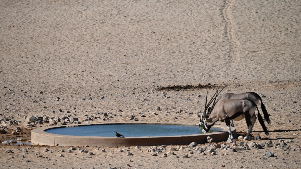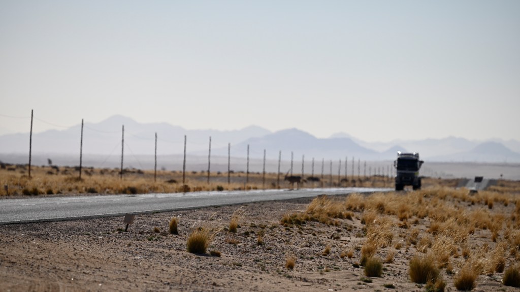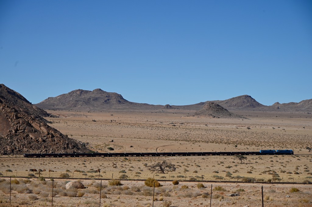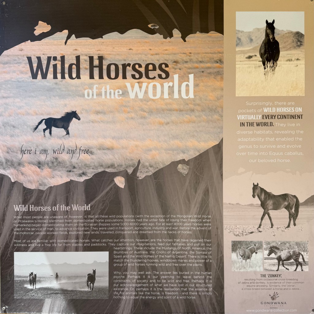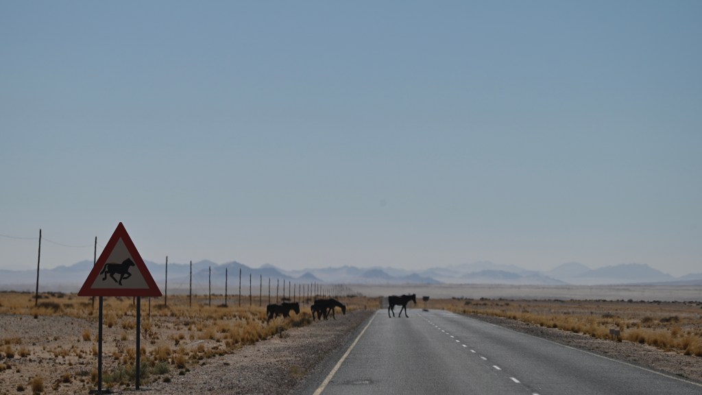 To see the hourses, you can visit the artificial waterhole at Garub, where many of them go to drink. There you’ll also meet wild Oryx’es and Ostriches, which also is adapted to the dry and hot desert climate. In the road there are road signs about horses entering the road, but large trucks, transporting Manganese between the port of Lüderitz and South Africa are still passing by, in rapid speed, not taking notice of the animals in the road.