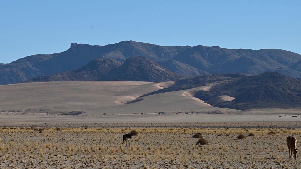 Klein Aus Vista was our “safe heaven” when we lived in Lüderitz. It was a place to “get away from it all”. Away from the people, wind and cold weather of the coast and into the peaceful and warm desert scenes, with birds, oryxes and horses. Really a place to get peace.