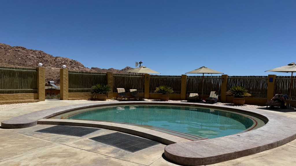 Since we last was in the area, Klein Aus Vista has become a “Gondwana lodge”, with higher prices, but also a very high quality on the services, so it was definitively worth it. The view and peacefulness is the same as before, but they’ve got an excellent restaurant and even a swimming pool, shaped like a horse shoe. They also had a small curio shop, a bar and possibility for arranging activities as walks or mountain-bike trips in the mountains nearby areas.