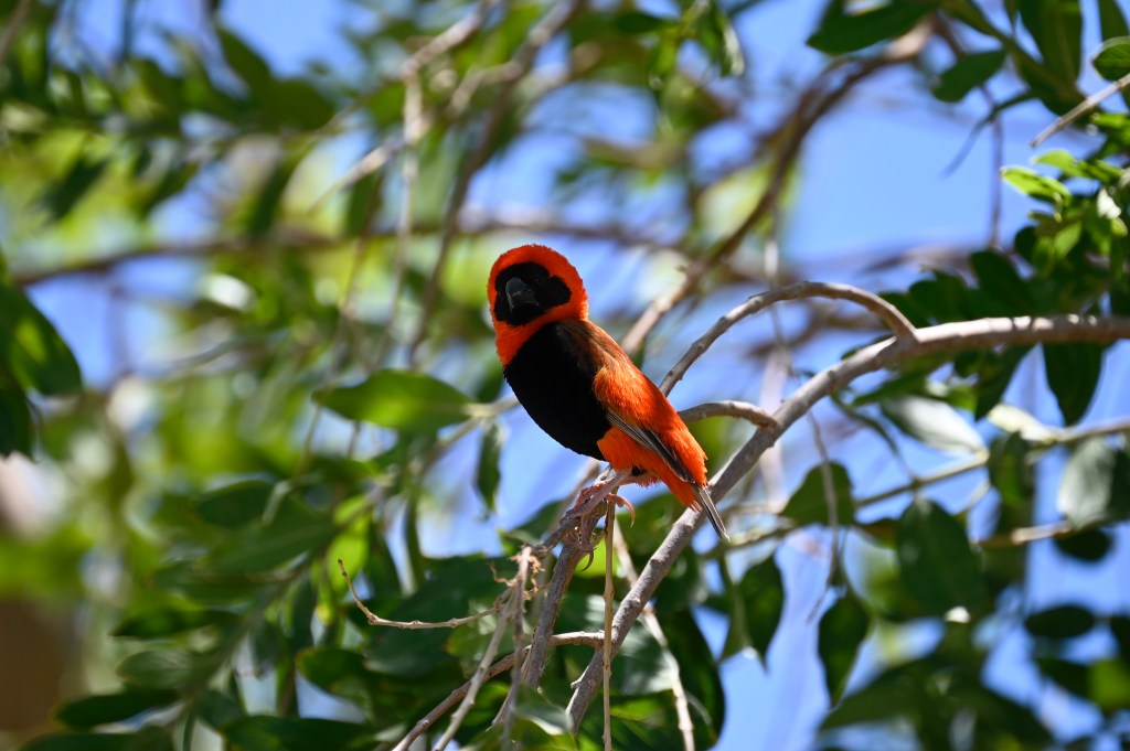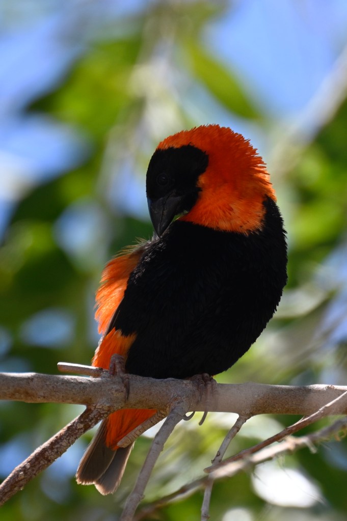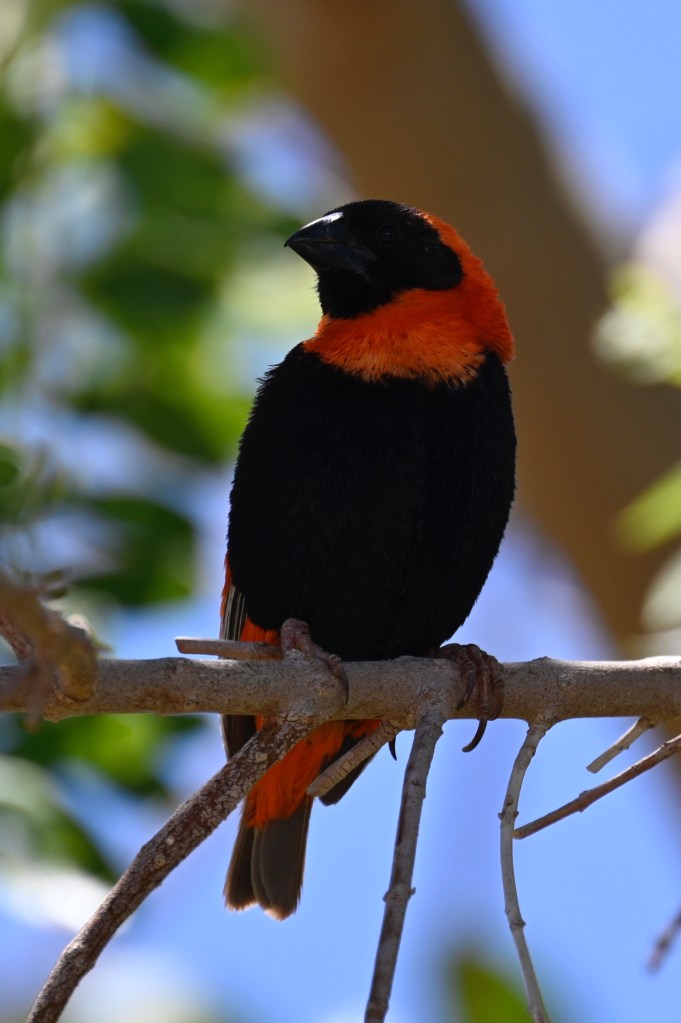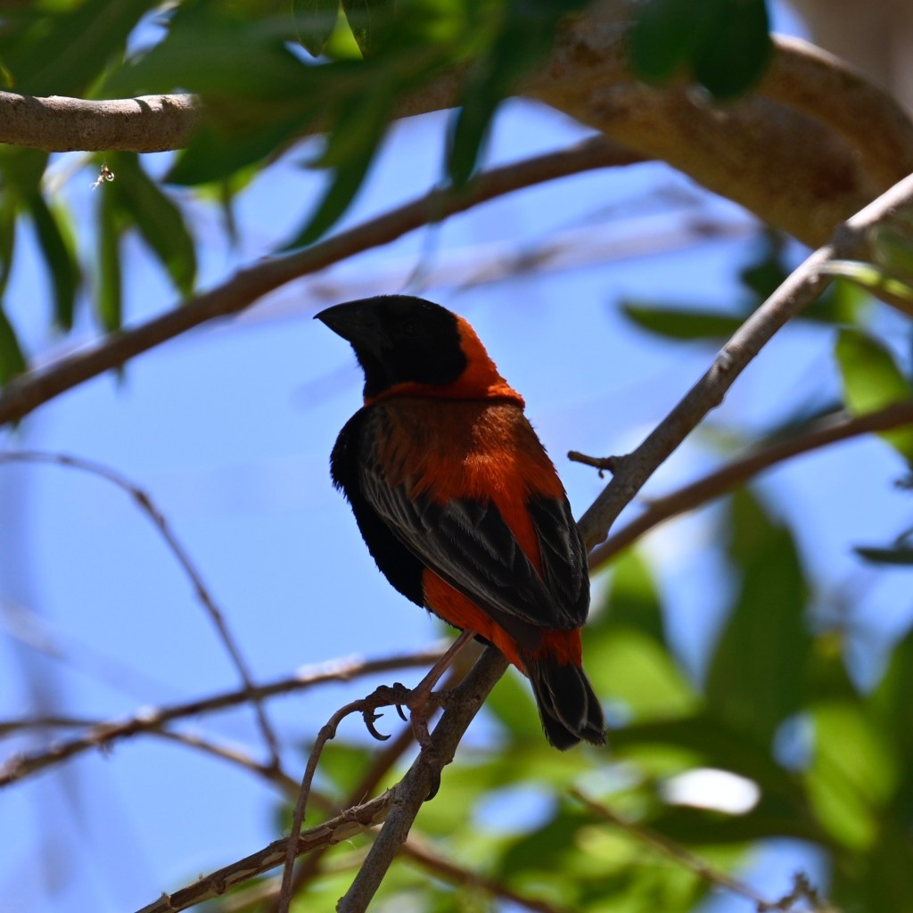 The birds living at Naute were quite spectacular in colour and could not have lived there had it not been for the water in the dam. The Southern Red Bishop is a kind of weaver bird, found in Southern Africa, but normally not in Namibia or Kalahari, as they need a wetter climate. This was the first time I saw this bird. The male and female has different colours and I think we saw them both.