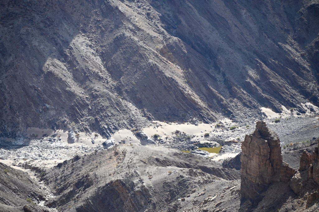 In some spots of the canyon you’ll find hot springs. The most accessible (with car) is Ai-Ais in the southern part. Here you’ll find the Ai-Ais NWR resort, which has thermal pools with supposedly healing properties (especially on rheumatism), as well as accommodation facilities. Years back, when we were there with a local friend, some of the staff showed us the “real springs”, a mud pool hidden between the tall reed in the riverbed. We laid there some time, and I really got dizzy, so some effect it definitively had. There is also hot springs inside the canyon, at a place called “Sulfur springs”