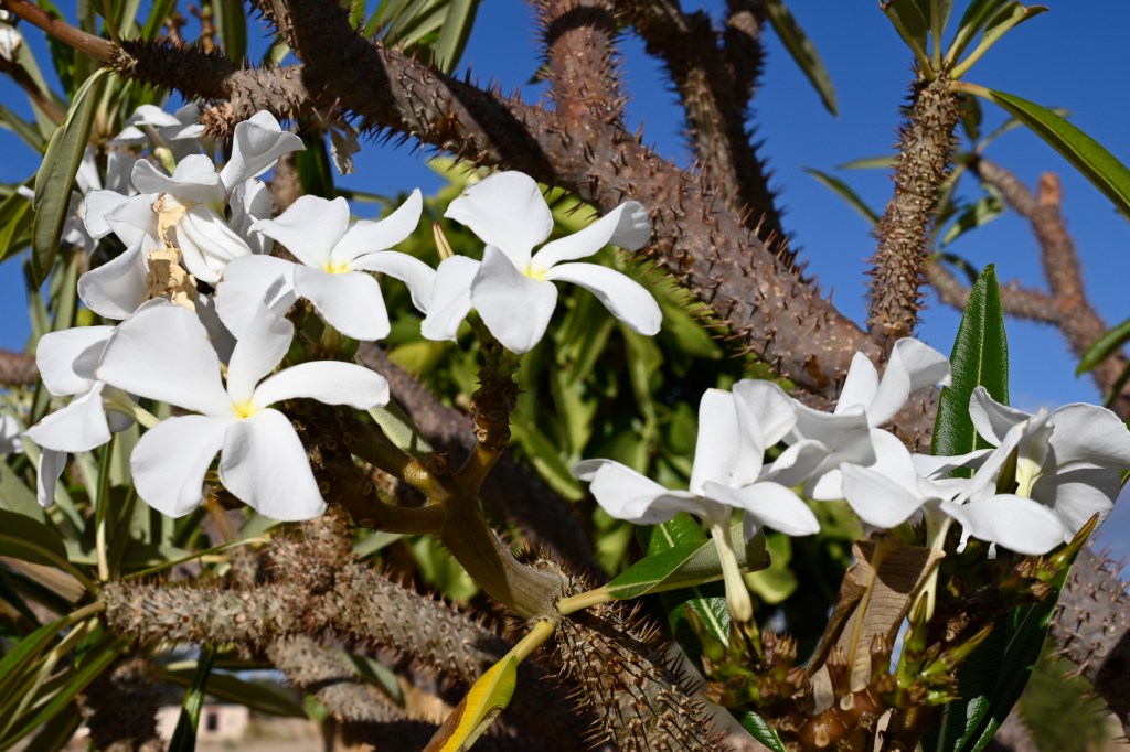We also hot to se many other plants, trees and flowers, but I lack names on most of them. One bush that I have seen many places, and especially in the dry, flat and stony highlands between Aus and Keetmashoop, was the “Milk bush”. According to our guide this was very poisonous, so I’m glad I never tried to look closer at it. He used a long stick to break off a small branch and a white, milky liquid came out. This was apparently used by the San people, to dip the tip of the arrows in. That would weaken the prey when they got shot by the arrow and make it more easy to hunt the prey down. The oryxes was one of the few animals that could eat this plant, but just in small portions.