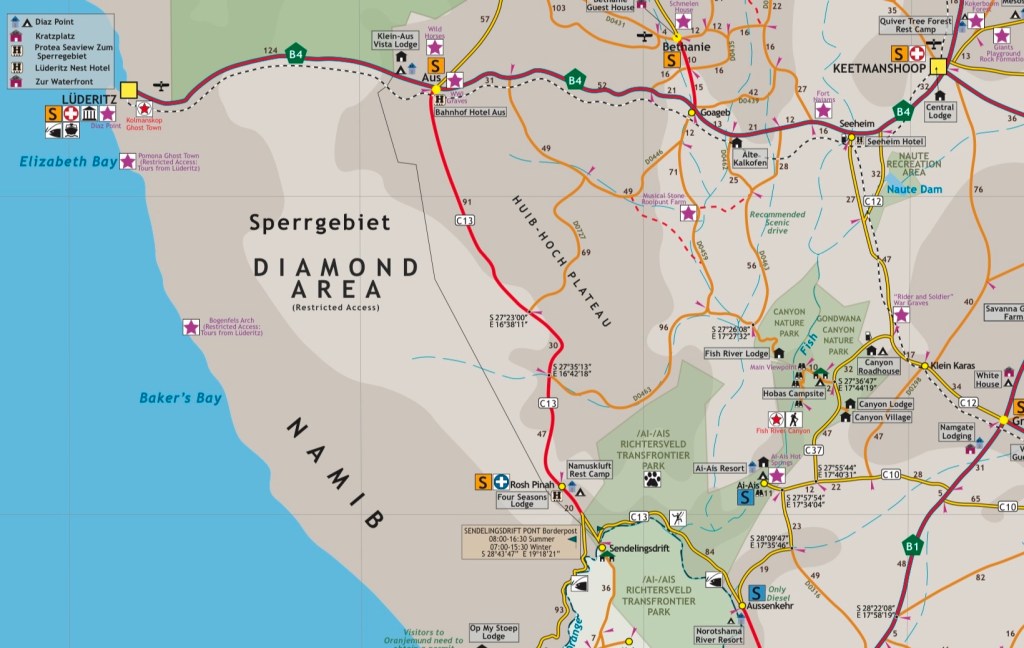 We had originally planned to drive southwards from Ais, on the tarred B13 to the mining city Rosh Pinah and then further along the northern banks of orange river on the gravel part of C13 to Aussenkehr and then again up to the Canyon lodge, passing Ai-Ais on the way. The road to Rosh Pinah is a road I have long wanted to see again, due to its beauty, and one of my dreams has always been to camp along the banks of the Orange river there. However, with the rains and uncertain gravel road conditions (and the promise of a shining pool awaiting at the Canyon lodge if we got there early), we chose not to do the southern route and rather drive the straight and easy tarred road towards Keetmanshop (B4) and turn southwards at Seeheim, on the C12 (smooth gravel) towards the Gondwana Canyon Nature Park, where the Fish river and our lodge (Gondwana Canyon Lodge) was located.